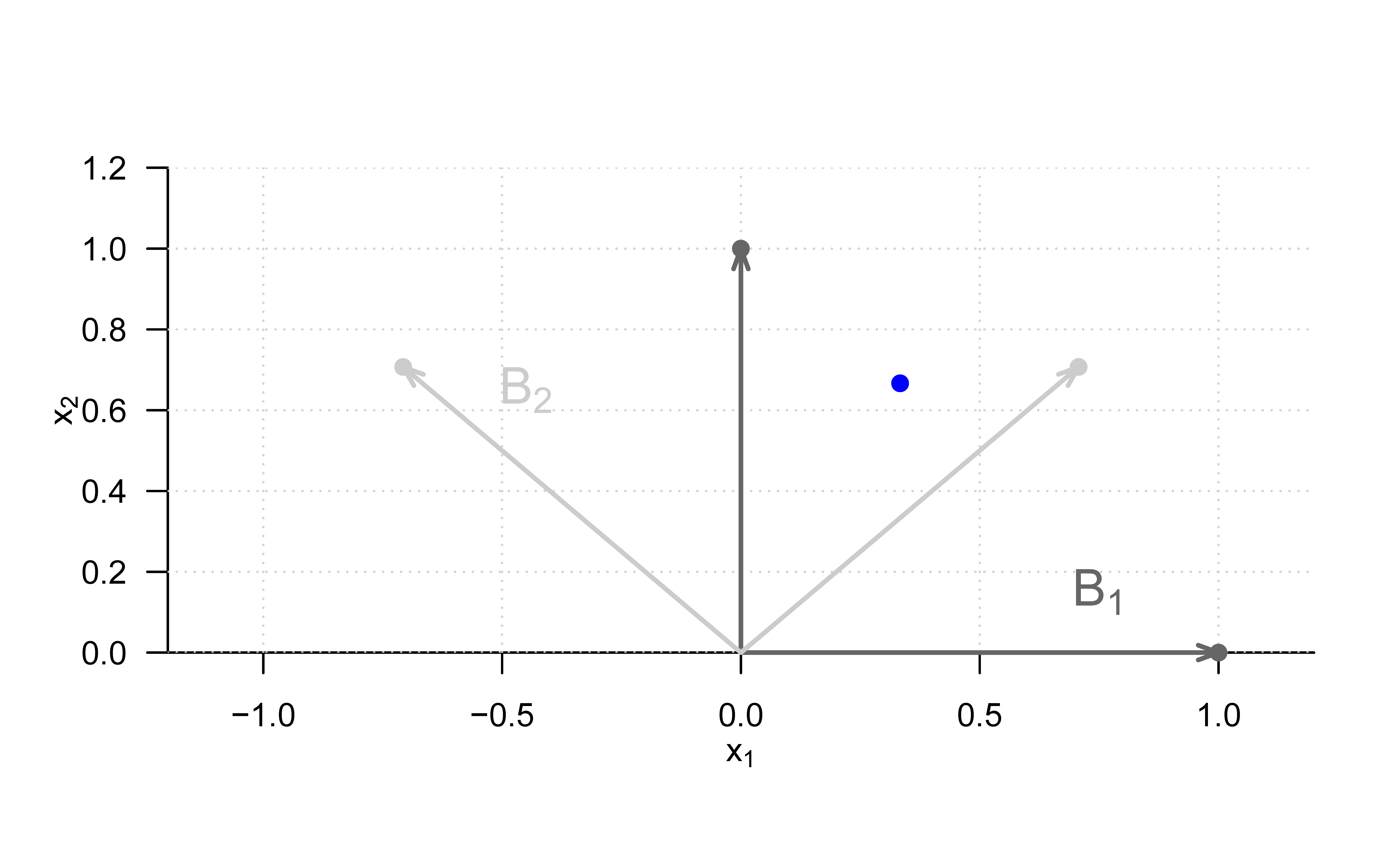 Wir visualisieren die beiden Orthonormalbasen \(B_1\) und \(B_2\) von \(\mathbb{R}^2\) in Abbildung 8.8.