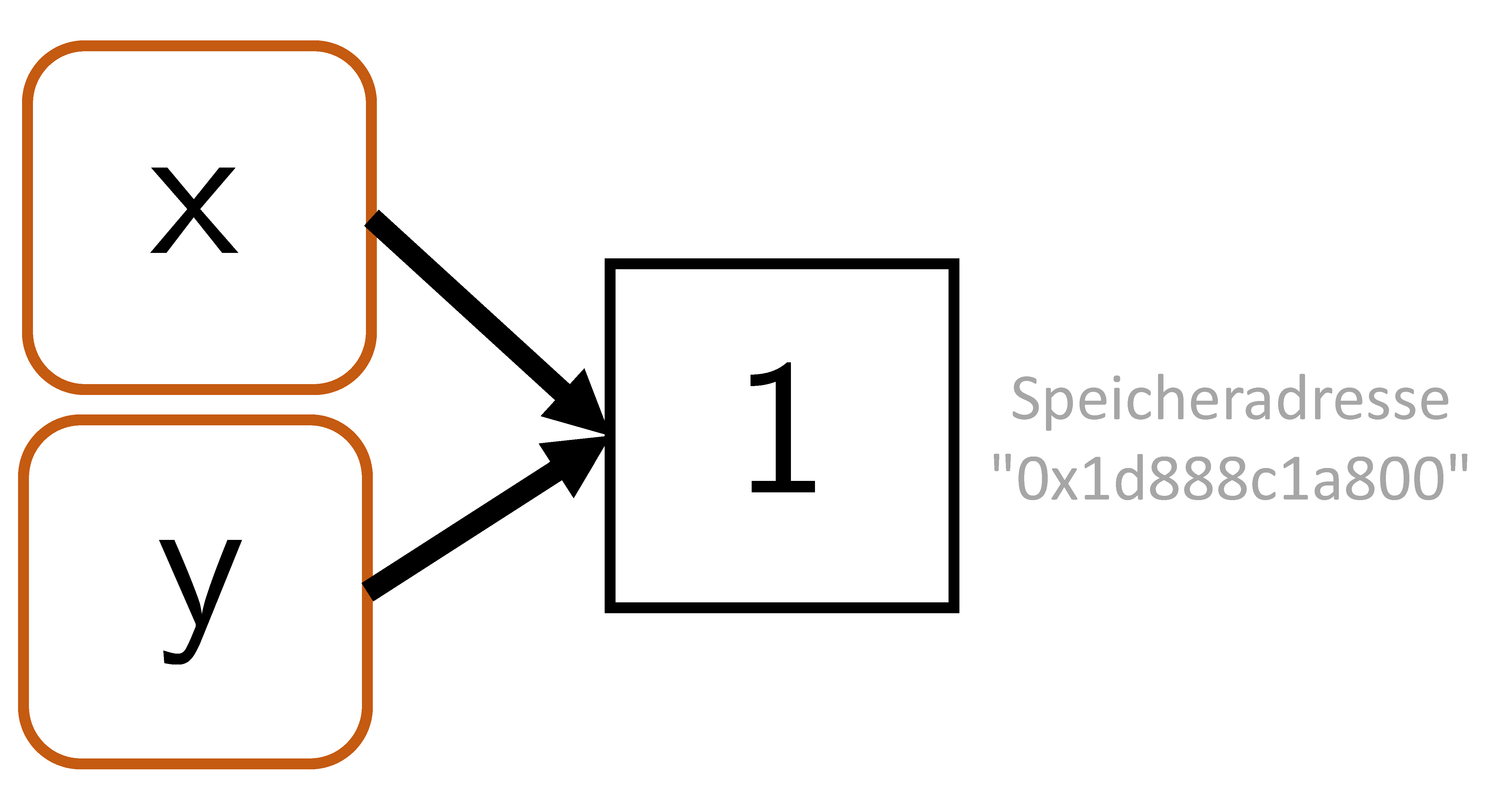 erzeugt, der dasselbe Objekt im Arbeitsspeicher referenziert wie x