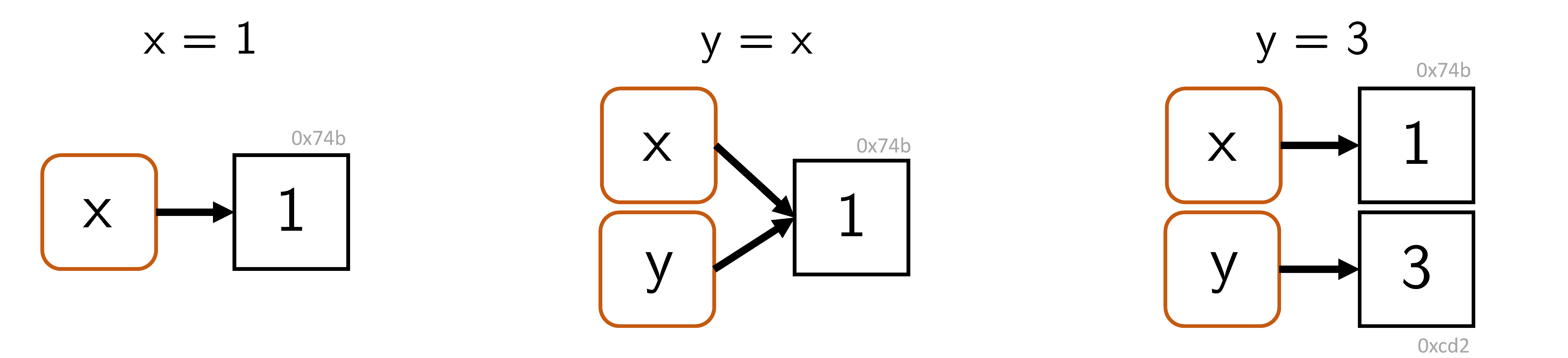 y = x # y referenziert dieselbe Speicheradresse wie x (0x74b)