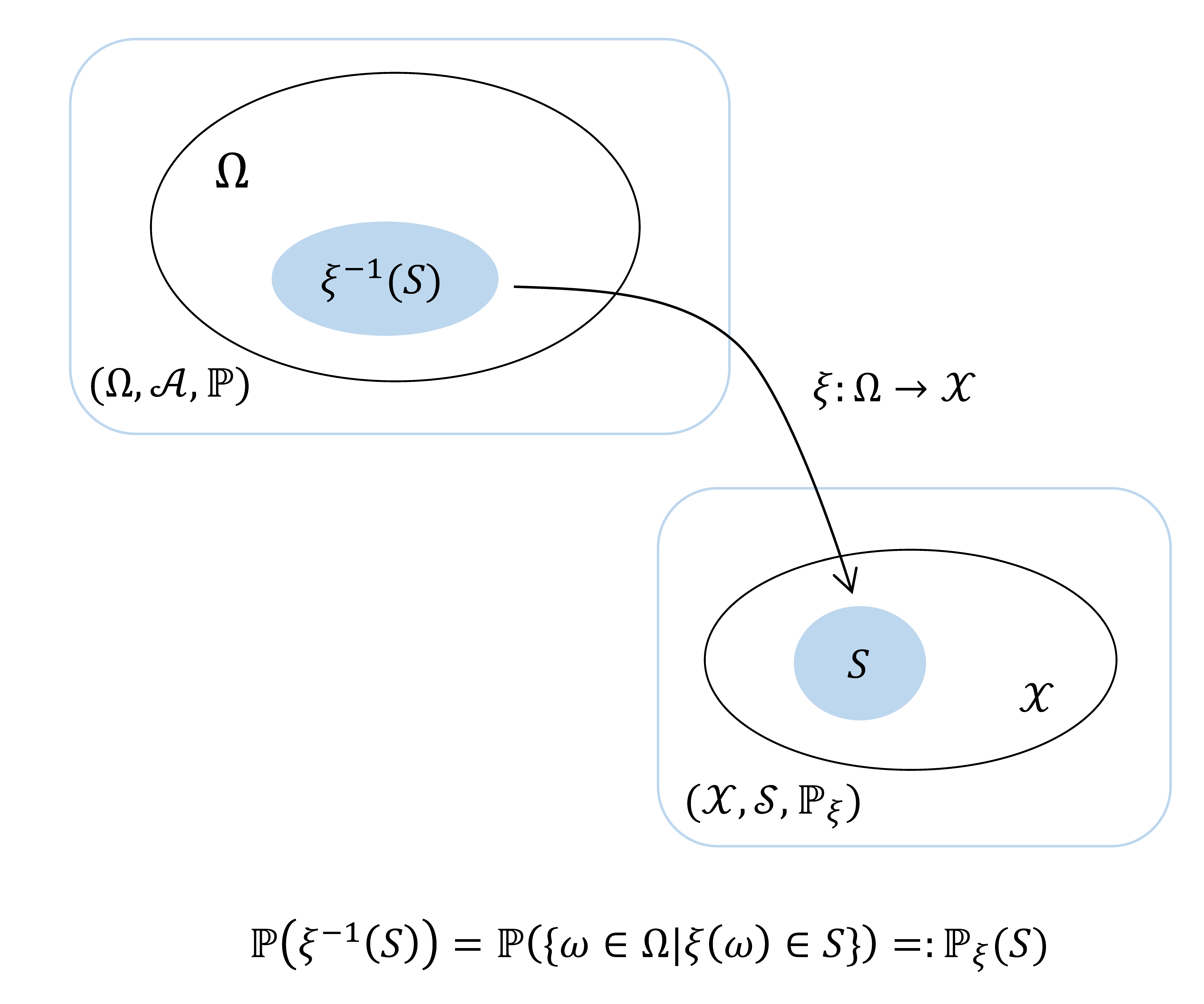\(\mathbb{P}_\xi(\{x\})\) | \(\mathbb{P}(\xi^{-1}(\{x\}))\) | \(\mathbb{P}(\{\omega|\xi(\omega) \in \{x\}\})\) | |