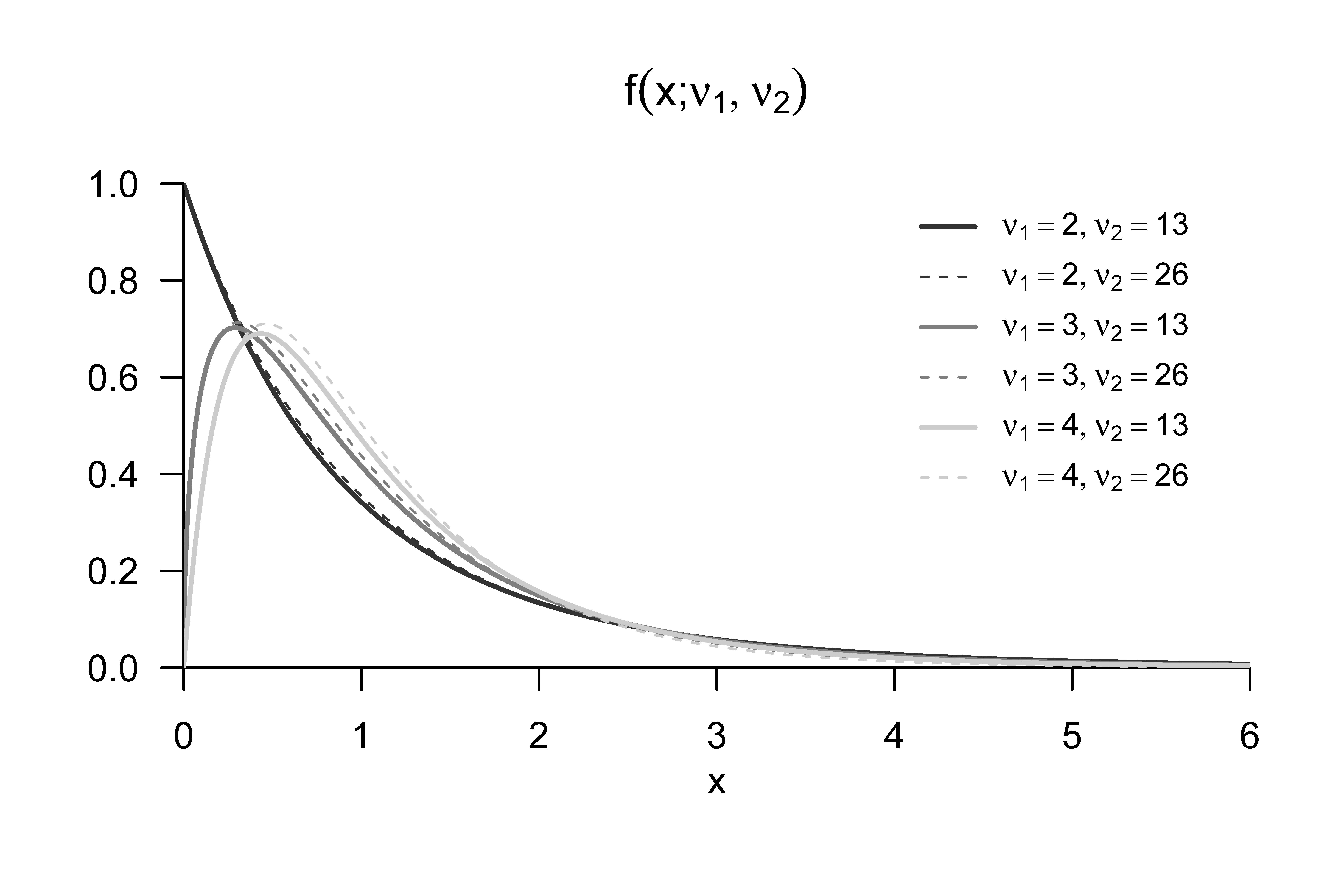 Für einen Beweis von Theorem 46.1 verweisen wir auf Hotelling (1931) und Anderson (2003). Wir erinnern in diesem Zusammenhang an die Begriffe der \(f\)-Zufallsvariable und der nichtzentralen \(f\)-Zufallsvariable, für die wir exemplarische WDFen in Abbildung 46.2 und Abbildung 46.3 darstellen.